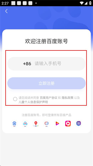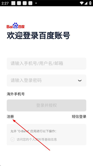 1、打开O-Band APP,在初始页面点“立即注册选项,进入百度账号注册页面。