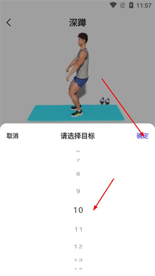 3、在目标选择界面中,选择所需的训练组数,点击确定完成目标设置。