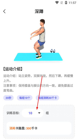 2、在运动详情页点击训练目标的下拉选项,进入目标选择界面。