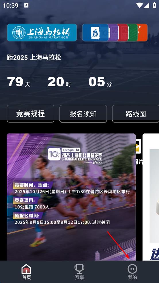 2、进入上海马拉松APP主界面后,在界面底部的导航栏中,找到我的选项并点击,界面会切换到个人相关页面。