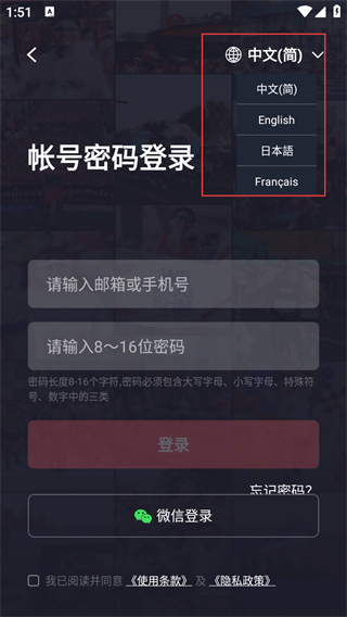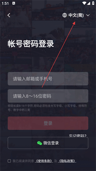 4、勾选我已阅读并同意使用条款及隐私政策前的方框,点击登录按钮,即可完成账号密码登录操作。