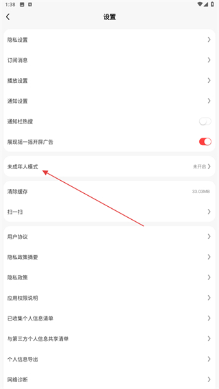 3、进入设置的页面内,找到并点击未成年人模式。