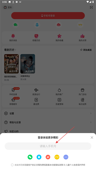 3、在下方输入框内输入手机号后,即可登录成功。