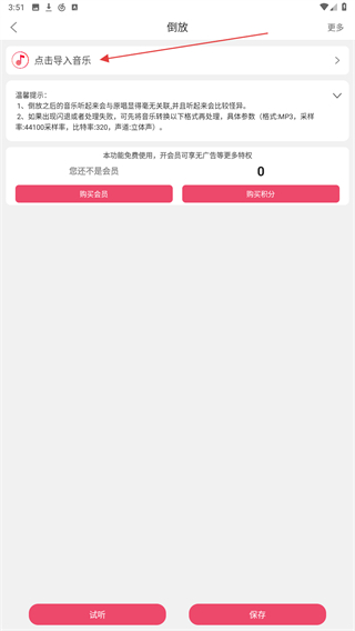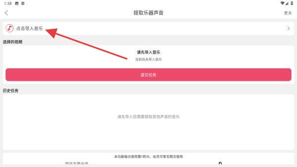2、在提取乐器声音界面,用户需要点击顶部导入音乐。