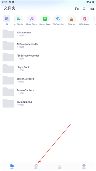 1、打开mx播放器APP,在首页内点击文件夹内容。