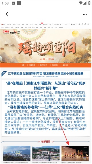 2、在地方频道页面,点击瑶韵颂重阳,可进入对应内容详情页。