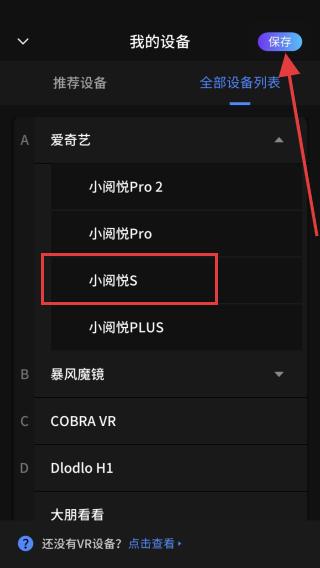 1、启动爱奇艺VRApp,在主界面找到并点击更换我的设备。