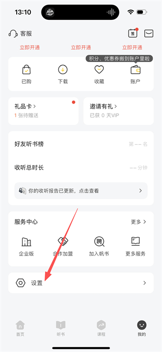 2、在个人中心页面,点击设置选项,进入设置页面。