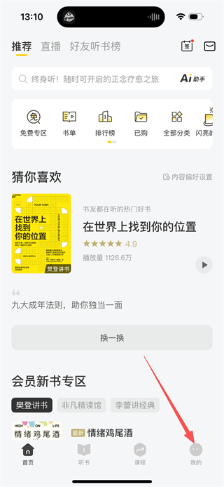 1、帆书的首页,点击底部的我的选项,进入个人中心页面。