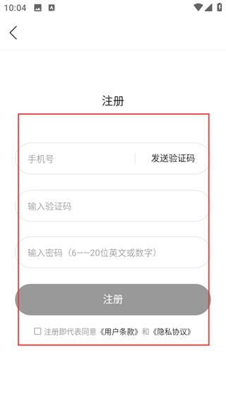 4、在注册页面,填写信息并勾选协议后,点击注册完成账号注册。