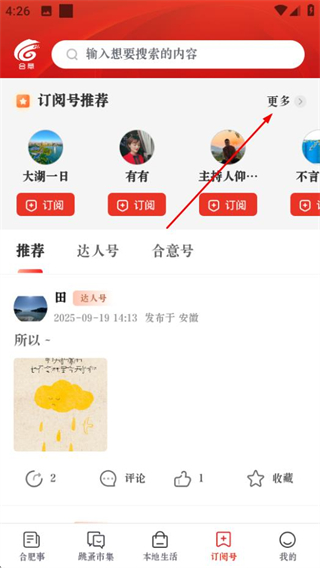 1、在合意的首页,点击底部的订阅号选项,进入订阅号页面。