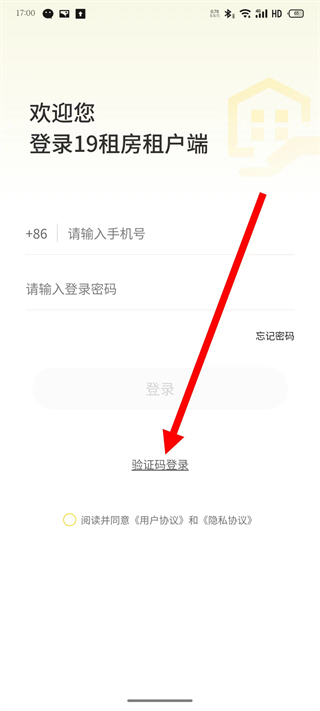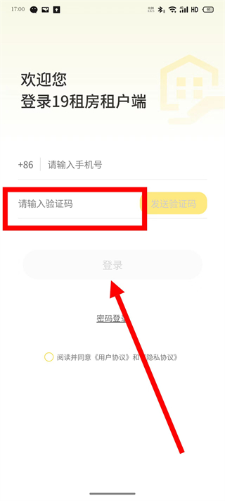5、将收到的验证码填入对应框,勾选协议后,点击登录,完成操作。