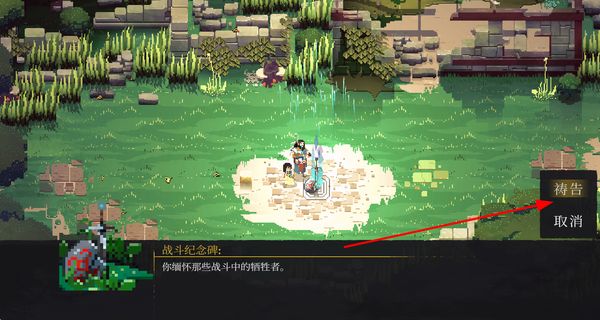 1、场景中找到对应交互点,点击祷告选项完成操作,可实现存档等功能,记录当前游戏进度。