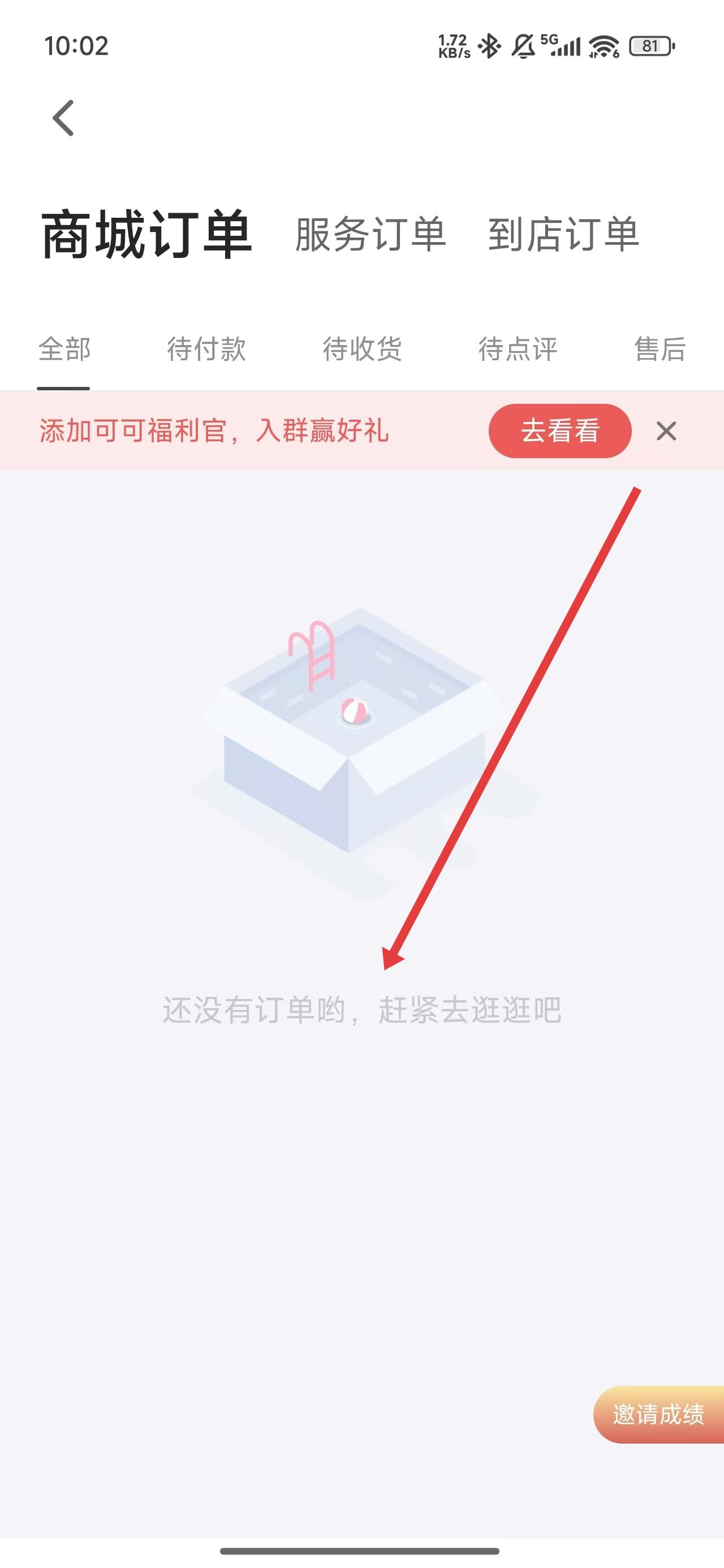3、在进入到我的订单页面中,屏幕显示当前账号暂无订单信息。