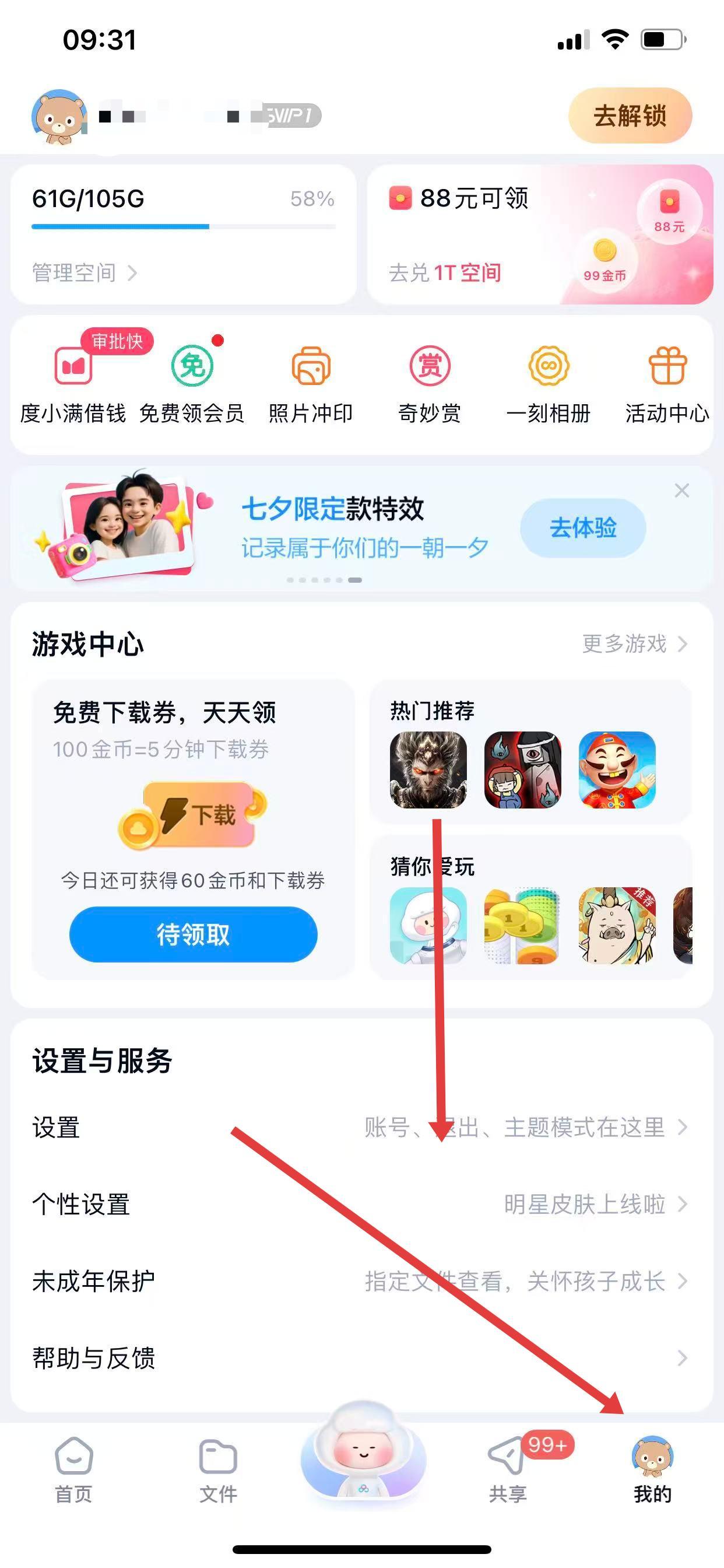 1、打开百度网盘应用,进入首页后点击底部右侧的我的选项。