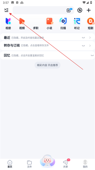 1、打开百度网盘APP,点击三条横线菜单图标。