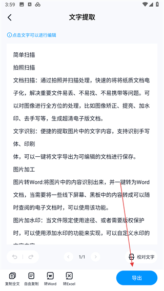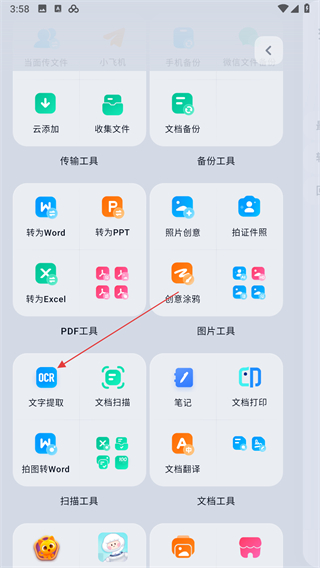2、在弹出的菜单中,找到并点击文字提取选项。