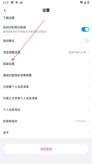 3、在设置页面中,选择高级设置选项,进入对应的设置界面。