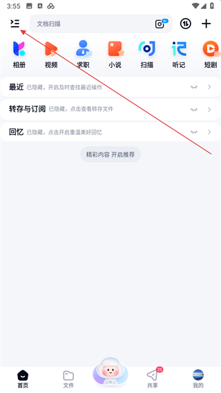 1、打开百度网盘APP,点击三条横线菜单图标。