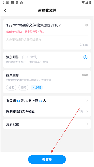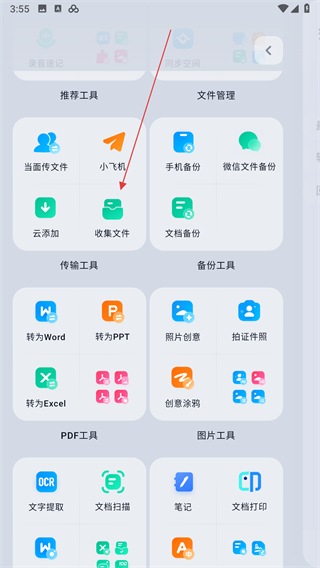 2、在弹出的菜单中,找到并点击收集文件选项。