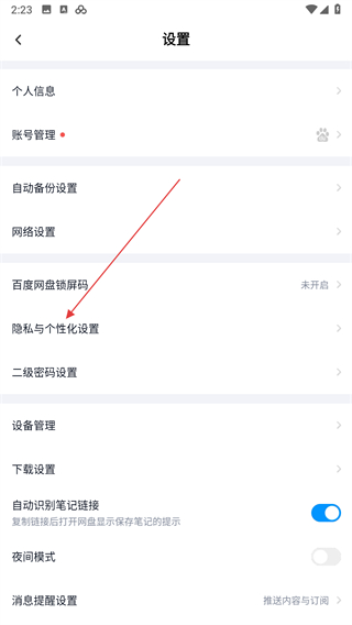 3、在设置页面中,选择隐私与个性化设置选项,进入对应的设置界面。