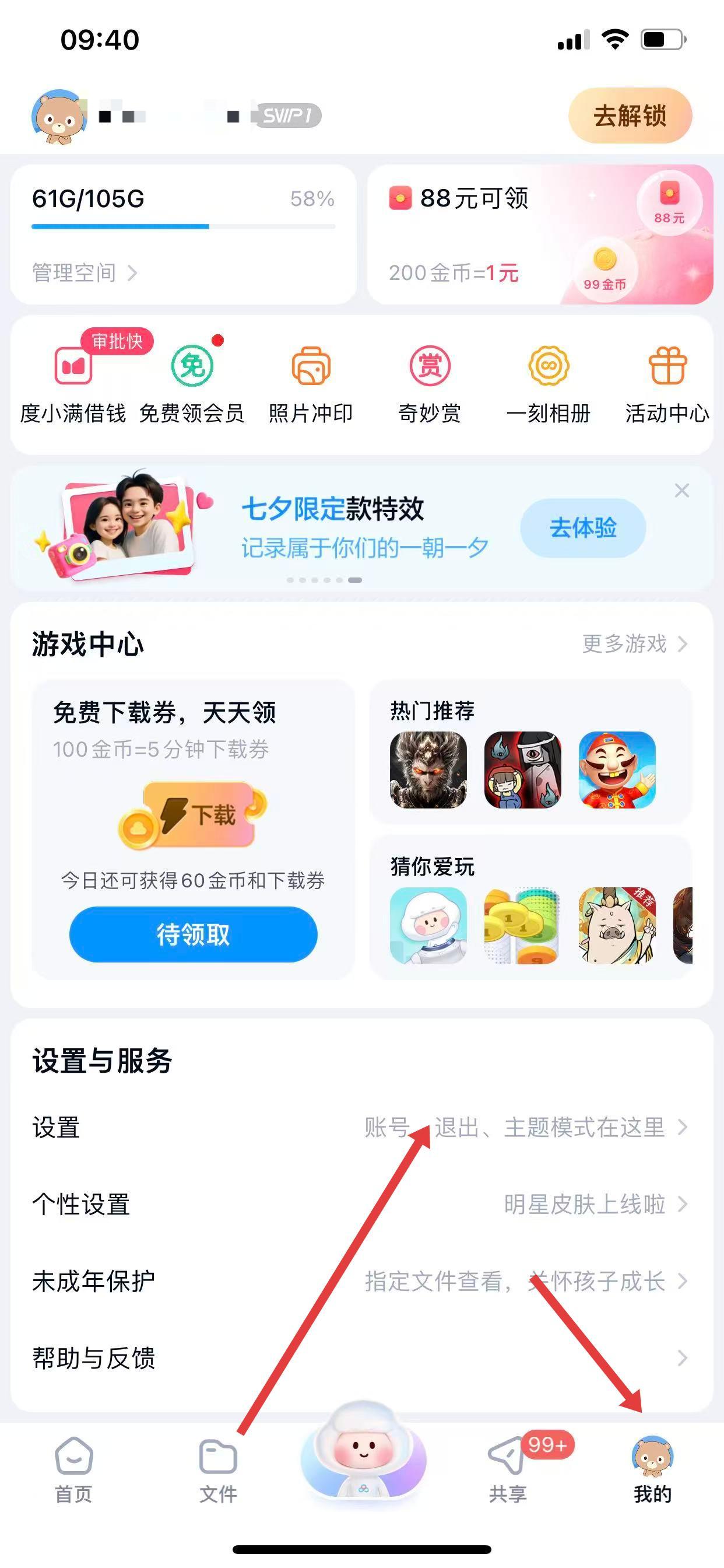 1、打开百度网盘应用,点击底部右侧的我的选项,进入个人中心页面。