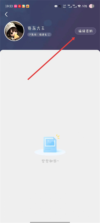 2、在个人主页页面找到编辑资料按钮,点击该按钮进入。