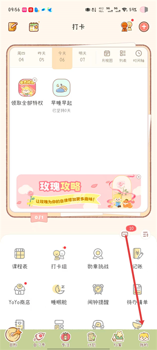 yoyo日常是一款主打计划管理与习惯养成的治愈系工具,支持快速创建个性化目标并设置打卡周期,进度实时可视化,帮你告别拖延、高效完成任务,它自带可爱的陪伴角色与清新界面,搭配专注模式、白噪音、番茄工作法等功能助力专注,还能通过日记式记录、数据统计复盘成长轨迹,完成打卡可获得玫瑰花奖励。