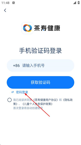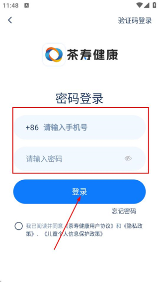3、在密码登录页面填写手机号和密码,勾选协议后,点击登录完成账号登录操作。