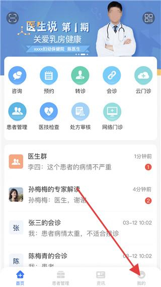 1、在纳里医生app的首页,点击底部我的选项,进入个人中心页面。