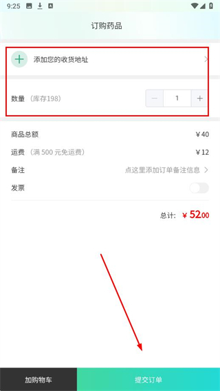3、添加收货地址,选择购买数量,点击提交订单,完成买药流程。