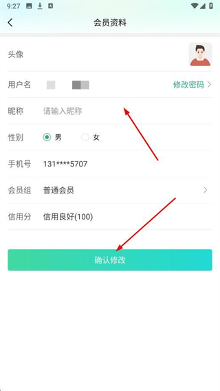 3、在会员资料页面,输入新的昵称,点击确认修改,完成用户名更改。