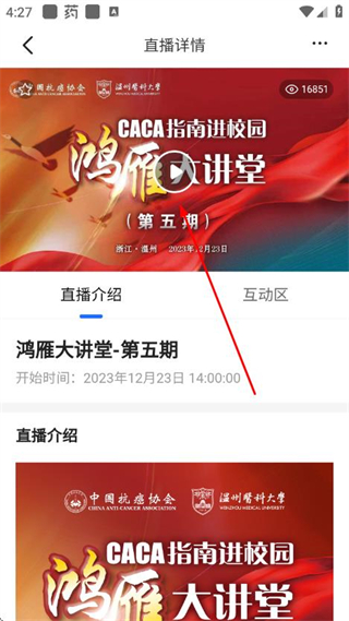 3、点击直播对应的观看,进入直播详情页面,即可观看该直播内容。