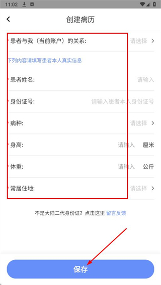 3、填写患者信息,点击保存,完成病例报告创建流程。