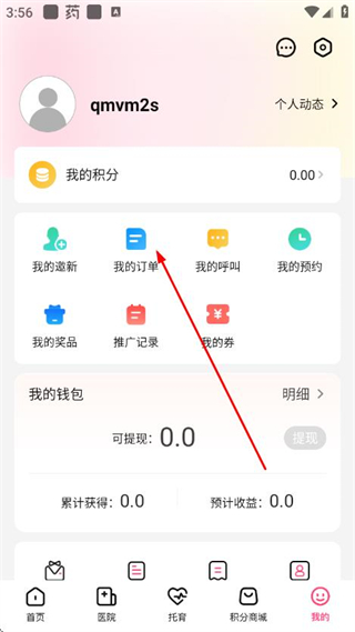 2、在个人中心页面点击我的订单选项,进入订单列表页面。