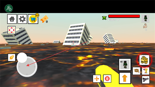 2、操控角色在场景中移动,使用道具如方块进行互动。