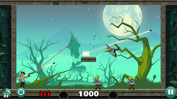 2、利用子弹的弹射效果,攻击多个僵尸,提升得分效率。