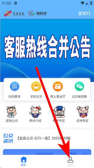 1、打开宜知行,点击底部的我的,进入个人页面。