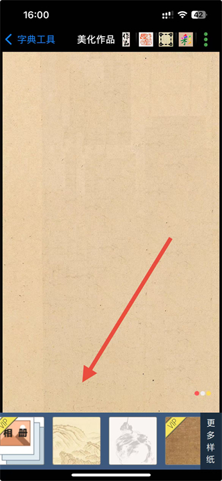 4、导入作品后,可选择界面中的背景样式等美化选项,调整作品呈现效果,完成后即可保存美化后的书法作品。