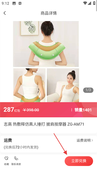 3、在商品详情页,点击立即兑换按钮,弹出兑换确认弹窗。