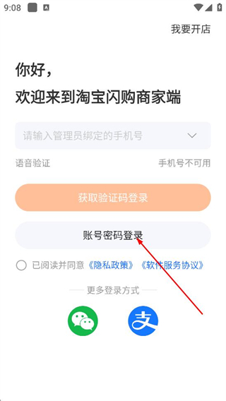 2、在登录页面,点击账号密码登录选项,切换到账号密码登录页面。