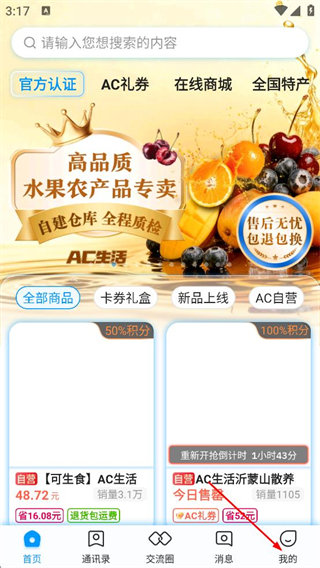 1、在AC生活首页,点击底部导航栏的我的,进入登录相关页面。