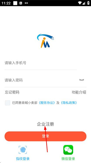 1、在登录页面点击企业注册选项,进入企业注册页面。