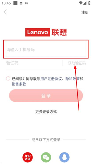 2、在手机验证登录页面填写手机号,勾选协议后,点击获取验证码。
