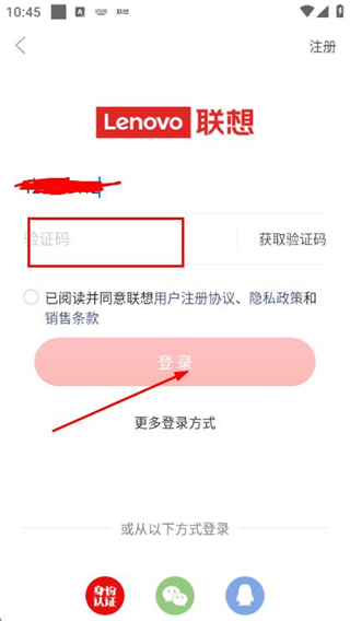 3、在验证码输入框中填写收到的验证码,点击登录完成账号的登录操作。