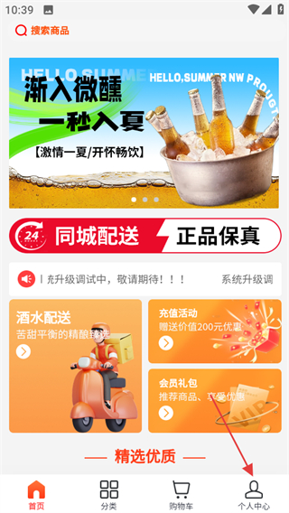 1、在真购物商城首页,点击底部的个人中心选项,进入会员中心页面。