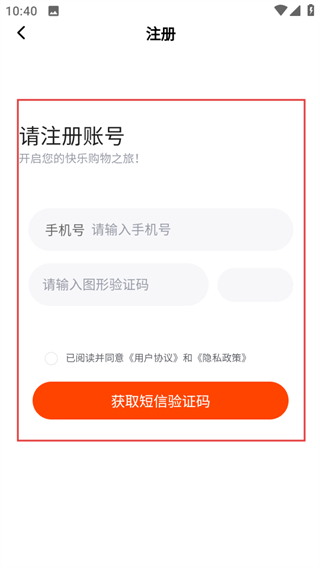 4、在注册页面,填写信息并勾选协议后,完成注册流程。