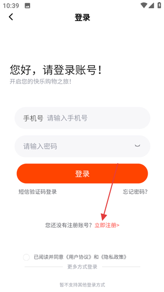 3、在登录页面,点击立即注册选项,进入注册账号页面。