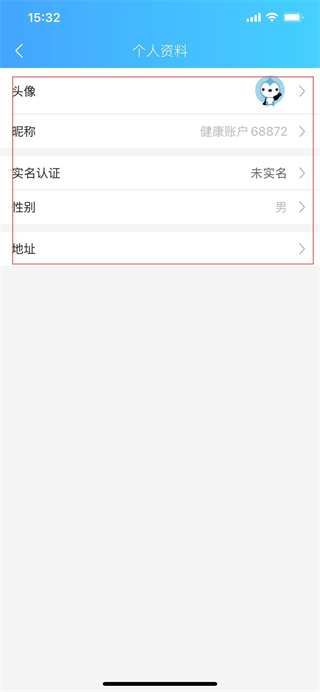 2、在个人中心页面点击健康账户区域,进入个人资料页面。