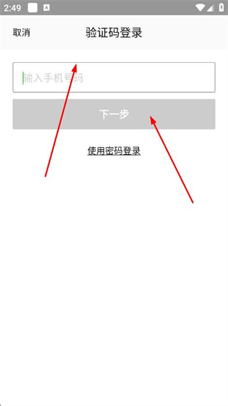 2、在验证码登录页面输入手机号码,点击下一步获取验证码。
